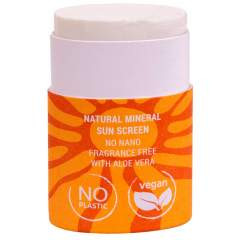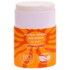 Kiinteä aurinkosuojapuikko kasvoille. Hajusteeton ja vegaaninen aurinkosuojapuikko saa tehonsa UVA ja UVB-säteilyltä suojaavasta sinkkioksidista. Ei sisällä nanopartikkeleita. Aurinkosuojakerroin 50.